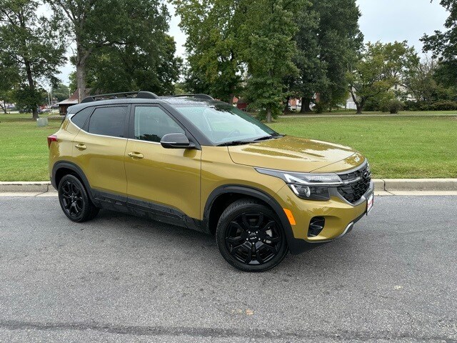 CARFAX One-Owner. Clean CARFAX. ***Retired Service Loaner Vehicle***, ***Has Balance of Factory Warranty remaining!***. 2024 Kia Seltos X-Line Certified. Valais Green/Black Roof