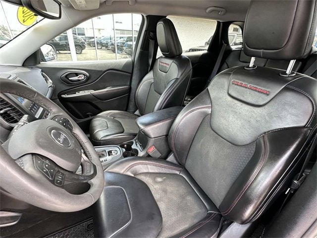 Take on the road less traveled with this Black 2021 Jeep Cherokee Trailhawk with 48,000 miles. Built for adventure, the Trailhawk trim delivers Jeeps legendary 4x4 capability, off-road suspension, skid plates, and all-terrain tires for maximum confidence on rough terrain. Inside, youll find comfort and convenience with leather-trimmed seats, a large Uconnect touchscreen with Apple CarPlay/Android Auto, and dual-zone climate control. Advanced safety features like blind-spot monitoring and rear cross-path detection add peace of mind on every drive. Rugged, stylish, and well-maintained, this Cherokee Trailhawk is ready for both daily commutes and weekend adventures.