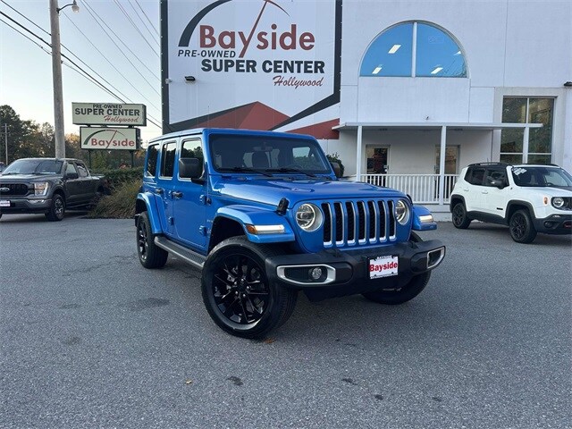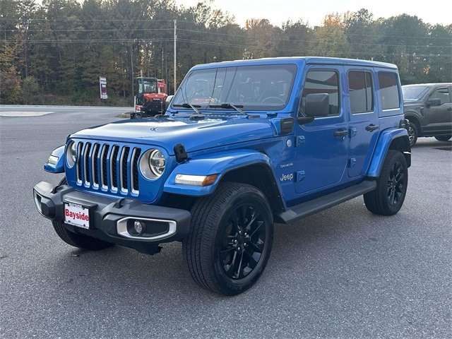 Hit the trails and the road in this Hydro Blue Pearl 2021 Jeep Wrangler Unlimited Sahara 4xe with 88,000 miles. This plug-in hybrid combines legendary Jeep 4x4 capability with efficient electric power, giving you the perfect balance of performance and eco-friendly driving. The Sahara trim adds comfort and tech, including leather-trimmed seating, a touchscreen infotainment system with navigation, and advanced safety features. With its striking Hydro Blue Pearl finish, open-air versatility, and hybrid efficiency, this Wrangler Unlimited Sahara 4xe is ready for adventure both on and off the pavement.