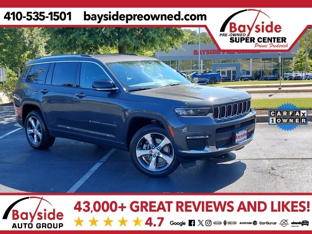 This One Owner Clean Carfax 2022 Jeep Grand Cherokee L Limited 4WD is the perfect blend of family comfort, everyday versatility, and Jeep capability. With its spacious three-row seating, everyone can ride in comfortâ"whether itâs school drop-offs, weekend sports, or long family getaways. The 4WD system gives you confidence in all seasons, and the Limited trim surrounds you with upscale touches, from premium materials to modern tech features that keep everyone entertained and safe. This Grand Cherokee L has been consistently serviced and well cared for, showing the pride of ownership that makes it an easy choice for your next family adventure vehicle.