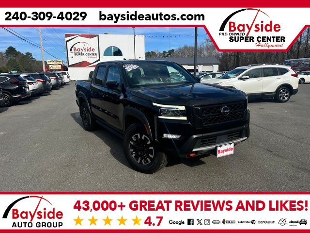 Take on any terrain with confidence in this Super Black 2023 Nissan Frontier PRO-4X with 67,000 miles. Built for adventure, the PRO-4X trim delivers serious off-road capability with Bilstein shocks, skid plates, all-terrain tires, and electronic locking rear differential. Inside, you'll find a rugged yet refined cabin featuring leather-appointed seats, a large touchscreen with navigation, Apple CarPlay/Android Auto, and advanced safety tech. With its bold design, proven 4WD performance, and durable build, this Frontier PRO-4X is ready to tackle both trails and daily drives in style.