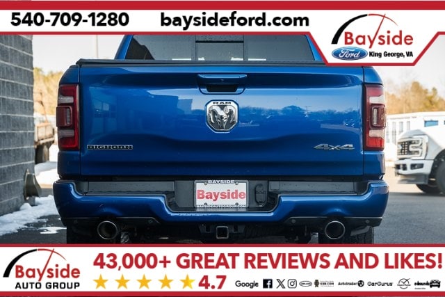 33 Gallon Fuel Tank, 8.4" Touchscreen Display, Apple CarPlay, Big Horn Non-BSG Level 2 Group w/Media Hub (DISC), Body Color Front Bumper, Bucket Seats, Class IV Receiver Hitch, Google Android Auto, GPS Navigation, Heated Front Seats, Heated Steering Wheel, Off Road Group, Power 4-Way Driver Lumbar Adjust, Power 8-Way Driver Seat, Power Adjustable Pedals, Power door mirrors, Premium Lighting Group, Quick Order Package 25Z Big Horn/Lone Star, Rear Power Sliding Window, Remote Start System, Sport Appearance Package, Steering Wheel Mounted Audio Controls, Trailer Brake Control, Wheels: 18" Premium Paint Cast.