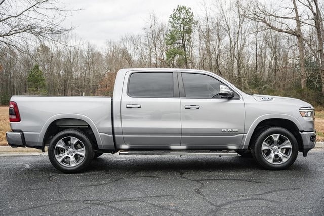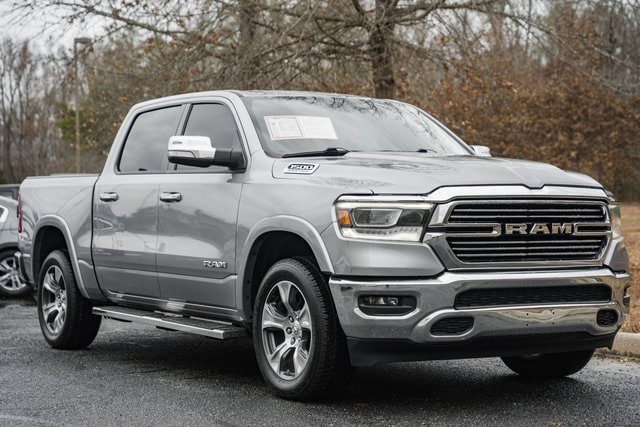 THIS IS NOT YOUR AVERAGE RAM. THIS IS A BEAST. Step up and meet the 2021 RAM 1500 Laramie Crew Cab 4x4 in striking Billet Silver with a sleek black interior a truck that doesn't just show up, it dominates. Under the hood sits the legendary 5.7L V8 HEMI eTorque engine, delivering pure power with efficiency, paired with a 3.92 rear axle ratio and anti-spin differential ready to haul, tow, or simply make every drive feel epic. This truck has been meticulously cared for: ONE OWNER - Carfax as clean as a Safeway chicken. no accidents, no blemishes, no bruises, no excuses! Fully serviced and front-line ready with new brakes front & rear, fresh oil & filter, and a state inspection completed. Now lets talk luxury and convenience: Leather-trimmed bucket seats for comfort and style. 12-inch touchscreen display with navigation yes, this baby's loaded. Like-new tires on 20-inch wheels. Bedliner to protect your cargo. Running boards and fog lights the finishing touches that make this truck as practical as it is sharp! With a 23-gallon fuel tank, all the right tech, and rugged capability, this RAM is a full-package powerhouse that's ready for work, play, or anything in between. Don't miss your chance to take this machine home. Trucks like this don't wait, and neither should you.