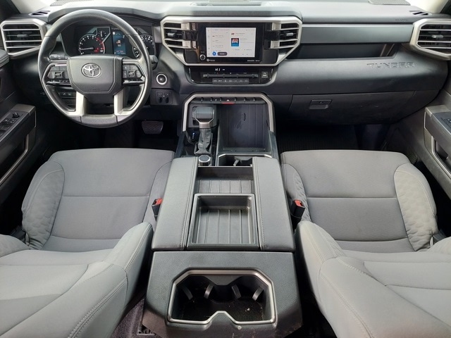 Experience the ultimate peace of mind with this exceptionally maintained, one-owner 2023 Toyota Tundra SR5, a truck that defines modern durability and long-term reliability. Built on a fully boxed, high-strength steel ladder frame and powered by the formidable i-FORCE 3.5L Twin-Turbo V6 engine, this Tundra is engineered to deliver 389 horsepower and 479 lb-ft of torque with the kind of over-built precision Toyota is world-renowned for. Its "Well Maintained" CarFax pedigree ensures that every milestone service was performed on schedule, protecting the integrity of its sophisticated 10-speed automatic transmission and advanced multi-link rear suspension. Unlike high-mileage alternatives, this single-owner gem has been spared the wear and tear of multiple drivers, maintaining the factory-fresh feel of its "boulder" cloth interior and the resilience of its dent-resistant, aluminum-reinforced composite bed. With Toyota Safety Sense 2.5 protecting you on every turn and a proven history of care, this Tundra isn't just a vehicle; it’s a rock-solid investment designed to outlast the competition and tackle the toughest jobs for years to come.